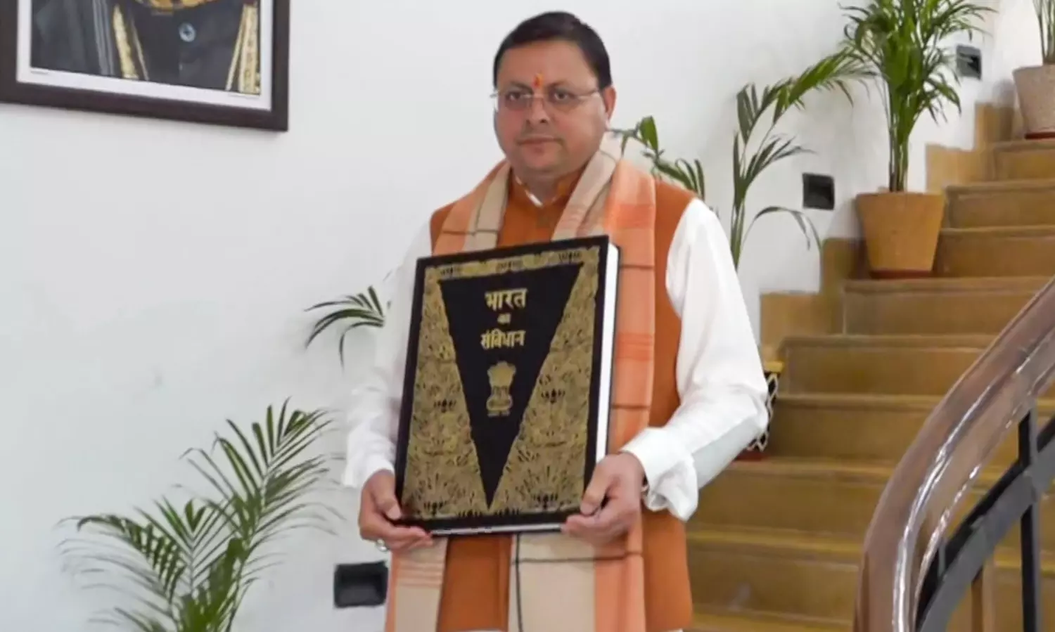 Uttarakhand Chief Minister Pushkar Singh Dhami with the Uniform Civil Code Bill that was introduced in the Uttarakhand Assembly. (File Image: PTI)