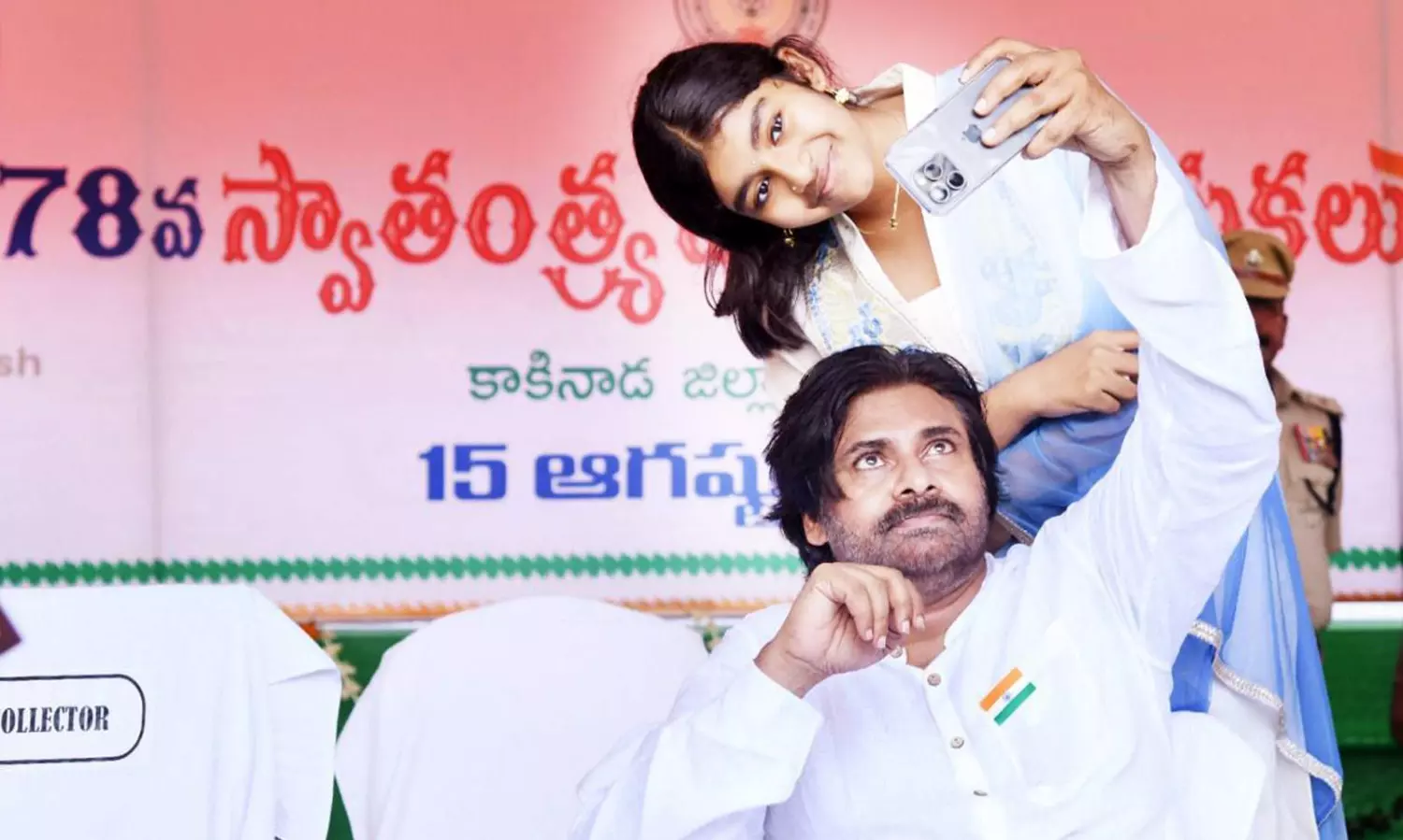 Kakinada: Deputy Chief Minister Pawan Kalyan was accompanied by his daughter Aadya during the official Independence Day celebrations, held here on Thursday.