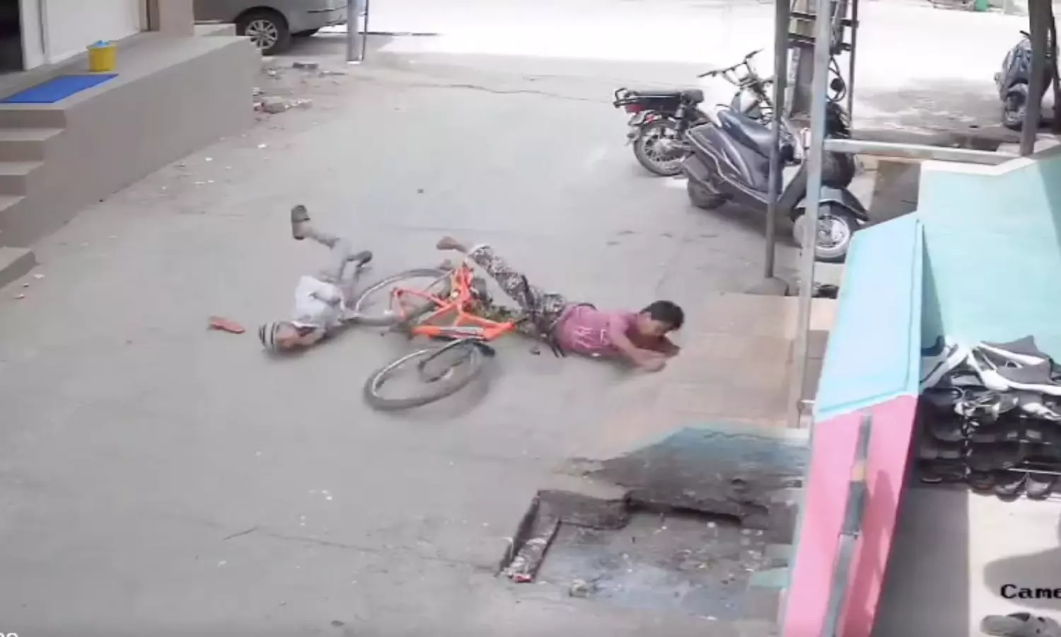 The video of the incident has surfaced on social media. The boys can be seen falling off the bicycle after being electrocuted by the broadband wires.