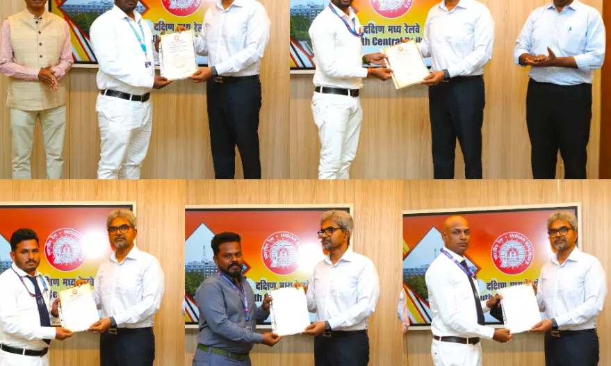 The awards were presented by Sanjay Kumar Srivastava, general manager, SCR, at a safety review meeting held at Rail Nilayam. A total of 15 employees from across the railway zone were recognised for preventing unsafe conditions during train operations. Mohit Sonakiya, divisional railway manager of Vijayawada Division, participated virtually along with other senior officials.