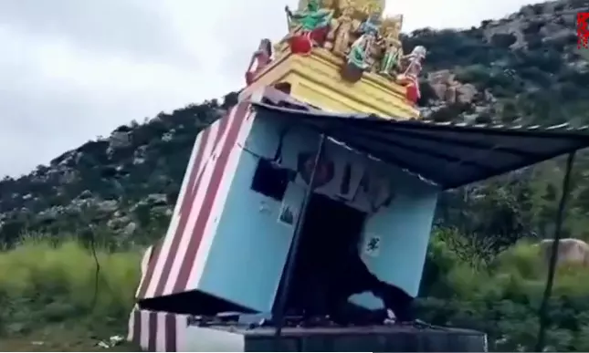 The miscreants dug out the walls and the main door of the temple, leading to the structure tilting towards one side. The entire basement was also damaged as the miscreants separated it from the ground.