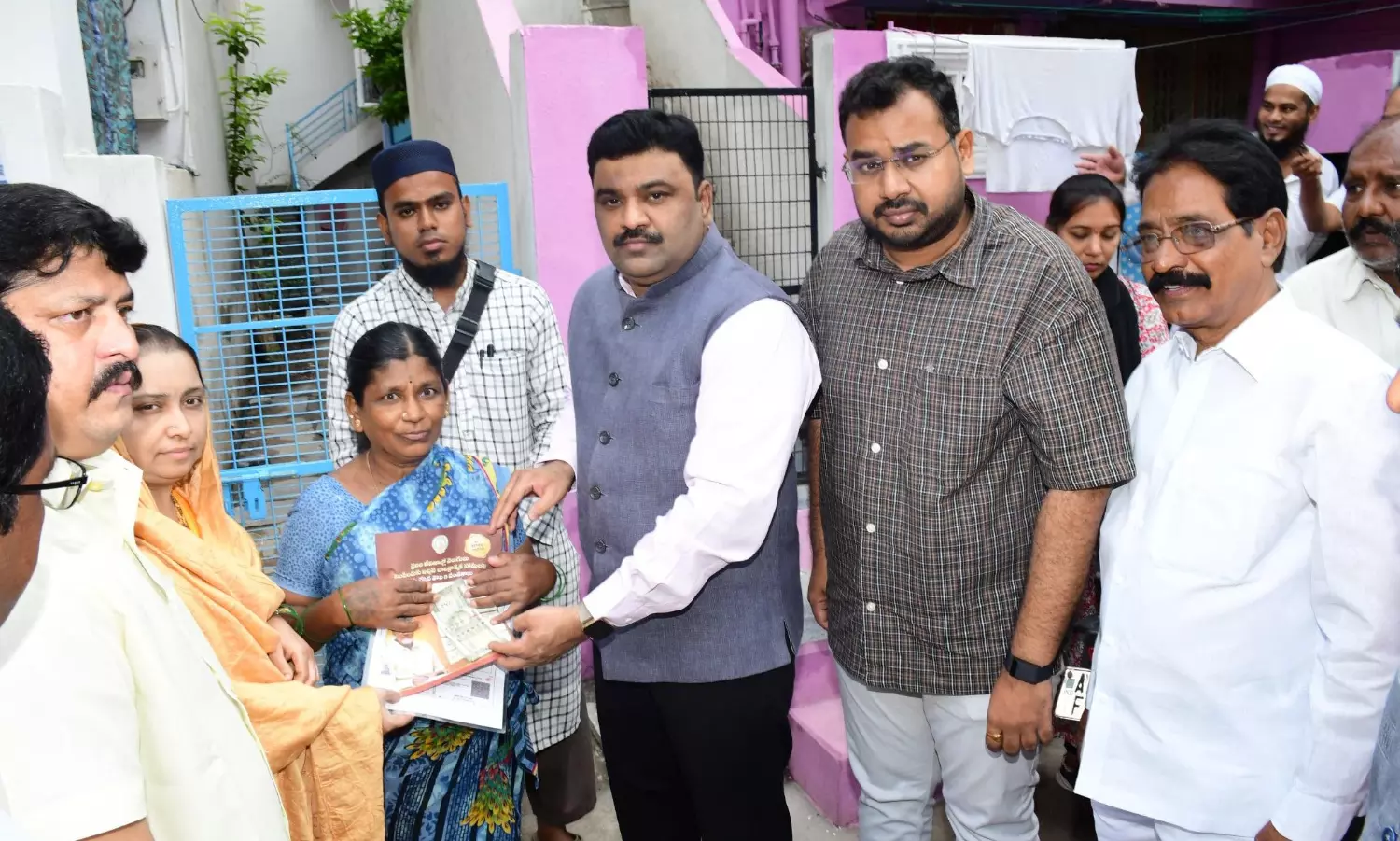 Municipal commissioner Bhargav Teja said that 94.71 per cent distribution was completed in Kurnool city. There were 33,751 beneficiaries in the 133 sachivalayam limits of the city and till 6.30pm, 31,967 persons got a total of `21.97 crore in cash.