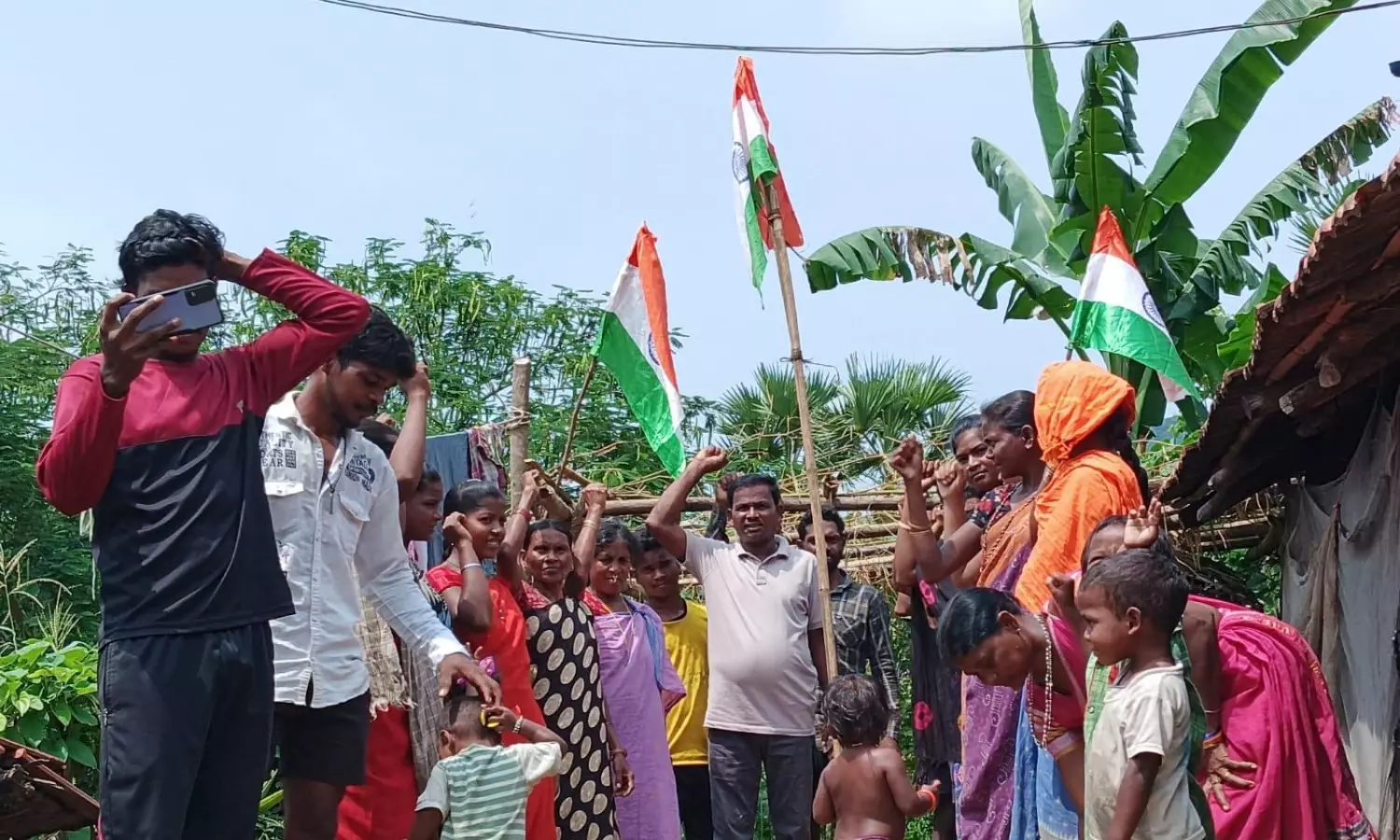 Visakhapatnam: Members of the particularly vulnerable tribal groups (PVTGs) hoisted the national flag on Independence Day at Kalyan Lowa and Ajay Puram.