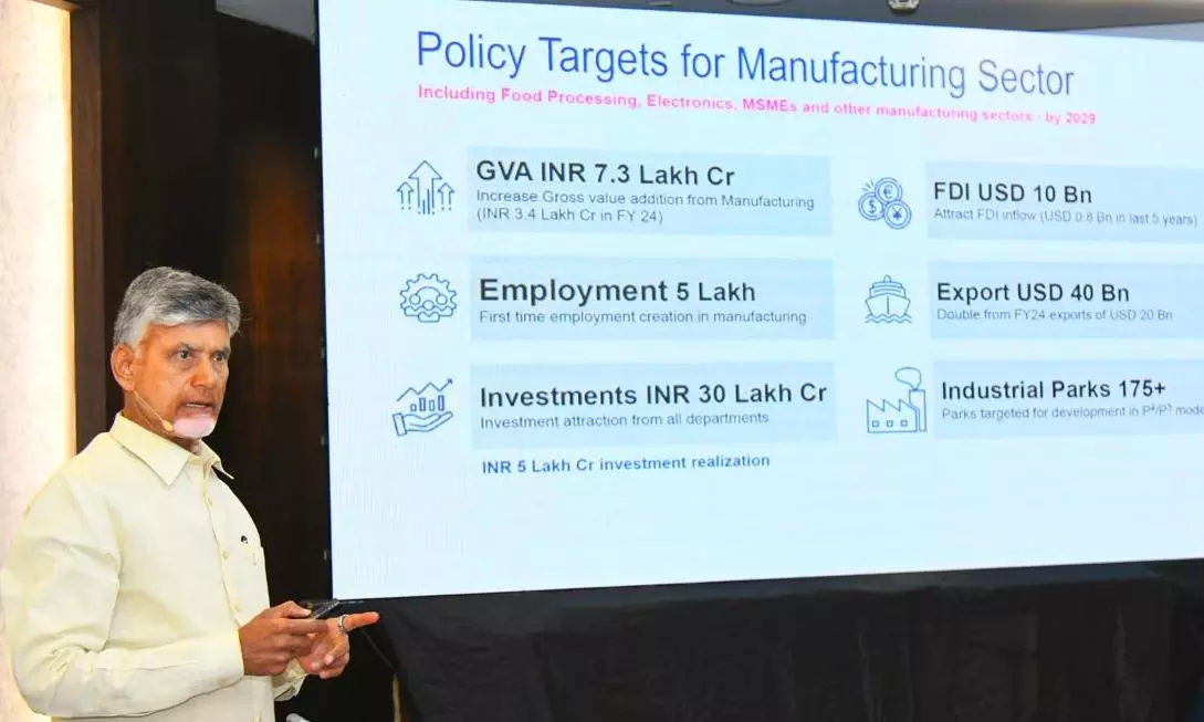 Naidu said the AP Industrial Development Policy 4.0, the AP MSME Entrepreneur Development Policy 4.0, the AP Food Processing Policy 4.0, the AP Electronic Policy 4.0, the AP Industrial Park Policy 4.0 and the AP Integrated Clean Energy, Green Energy Policy 4.0 are being taken forward.