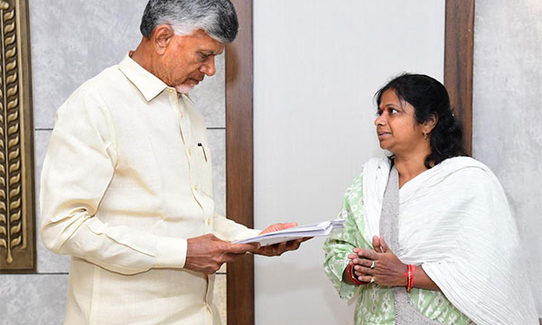 The woman Arudhra called on Chief Minister at the State Secretariat on Friday along with her daughter , Sailakshmi Chandra. She explained to chief minister and the TDP leader Chandrababu how she was "harassed" by the YSRCP government and that her daughter is suffering from serious backbone problems, according to a statement released by the TDP.