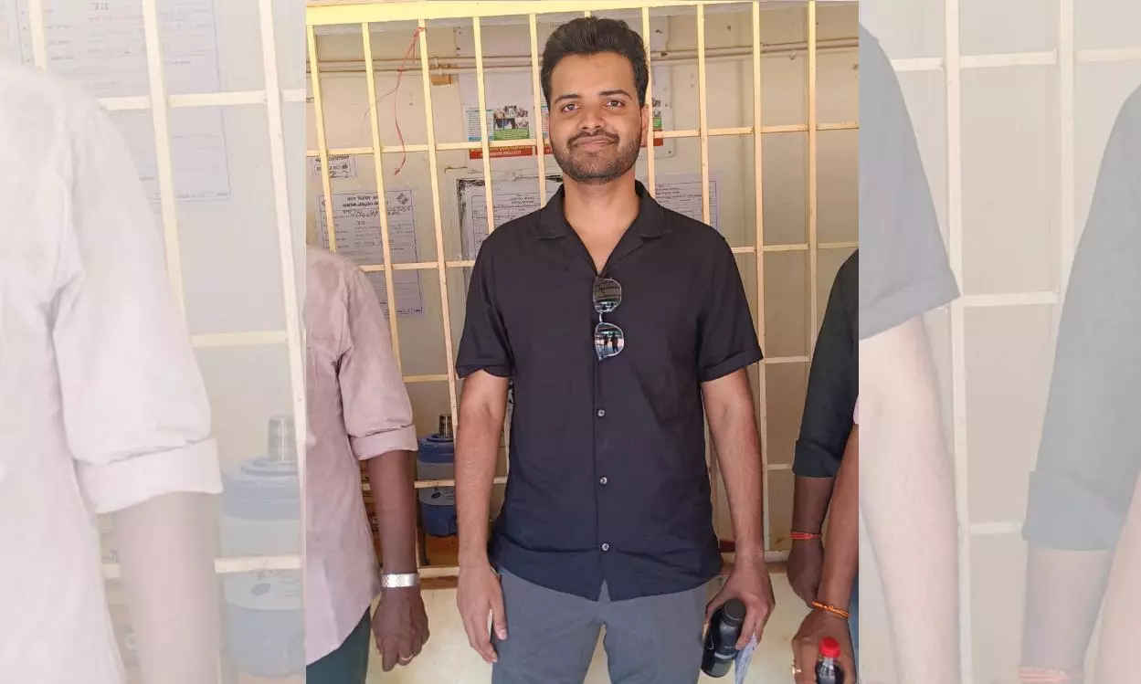 Hyderabad: The Election Commission has announced the polling day as a holiday so that people can go and vote. With so much awareness being raised by the EC and also by the Government to vote, still people do not vote but this young man stands out as an example for those who don't vote.