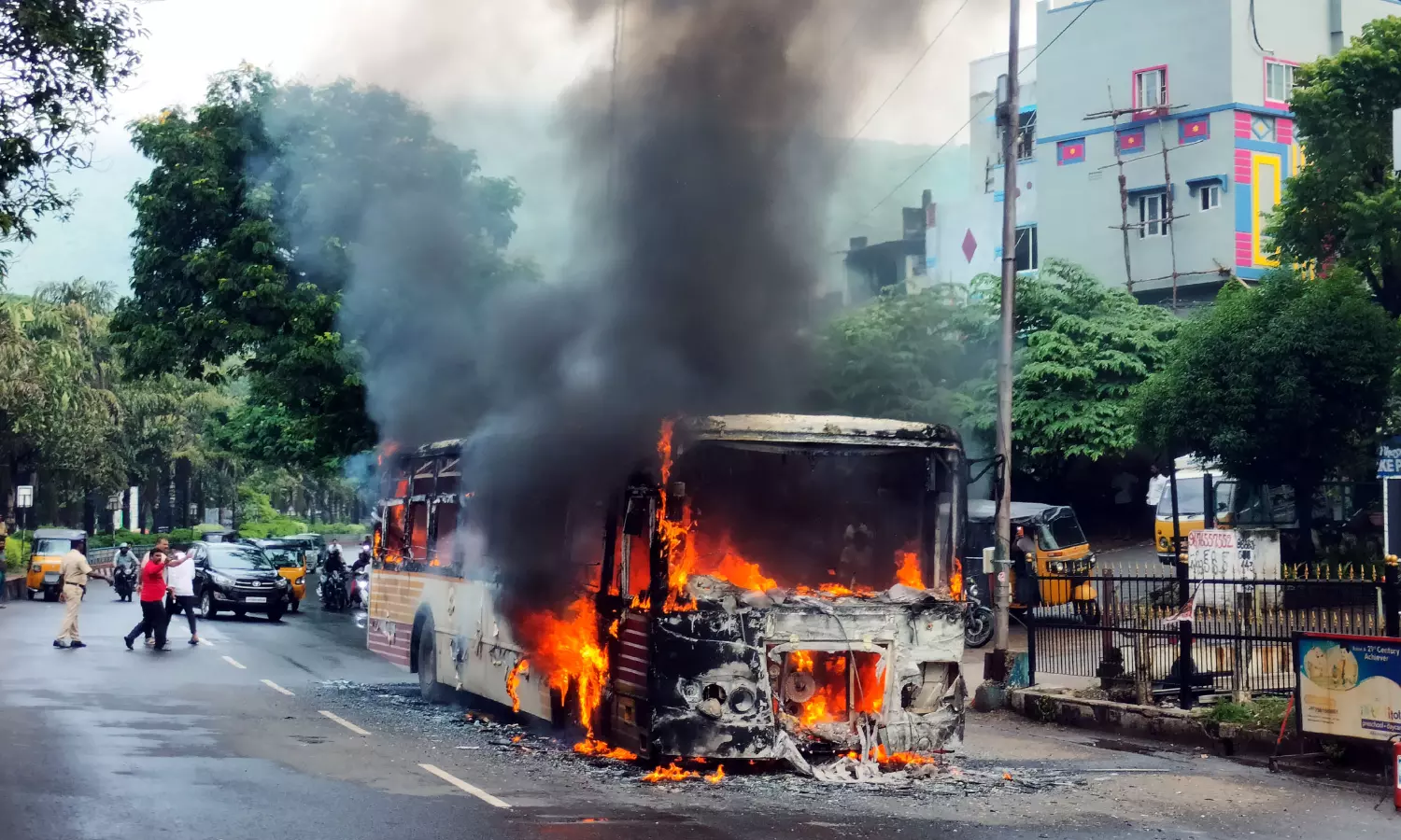 Visakhapatnam: An Andhra Pradesh State Road Transport Corporation (APSRTC) bus was completely destroyed in a fire incident near the Fourth Town police station signal point in Visakhapatnam on Thursday.