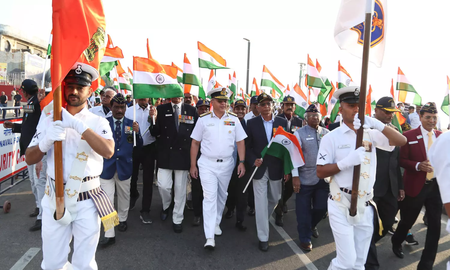 Vice Admiral Rajesh Pendharkar, Flag Officer Commanding-in-Chief, ENC, officiated as the chief guest. He was joined by Vice Admiral VK Namballa (Retd), President of the Navy Foundation, and Dr Chandra Shekar P, Master Chief Petty Officer of the Navy (Retd). The parade commenced from Vishwapriya Hall on RK Beach Road and concluded at the Naval Coastal Battery.