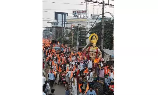 Nellore: The city witnessed a colourful and spiritually charged atmosphere on Sunday as thousands of activists from various Hindu organisations participated in the Hanuman Sobha Yatra, a grand procession organised by the Hindu Chaitanya Vedika.