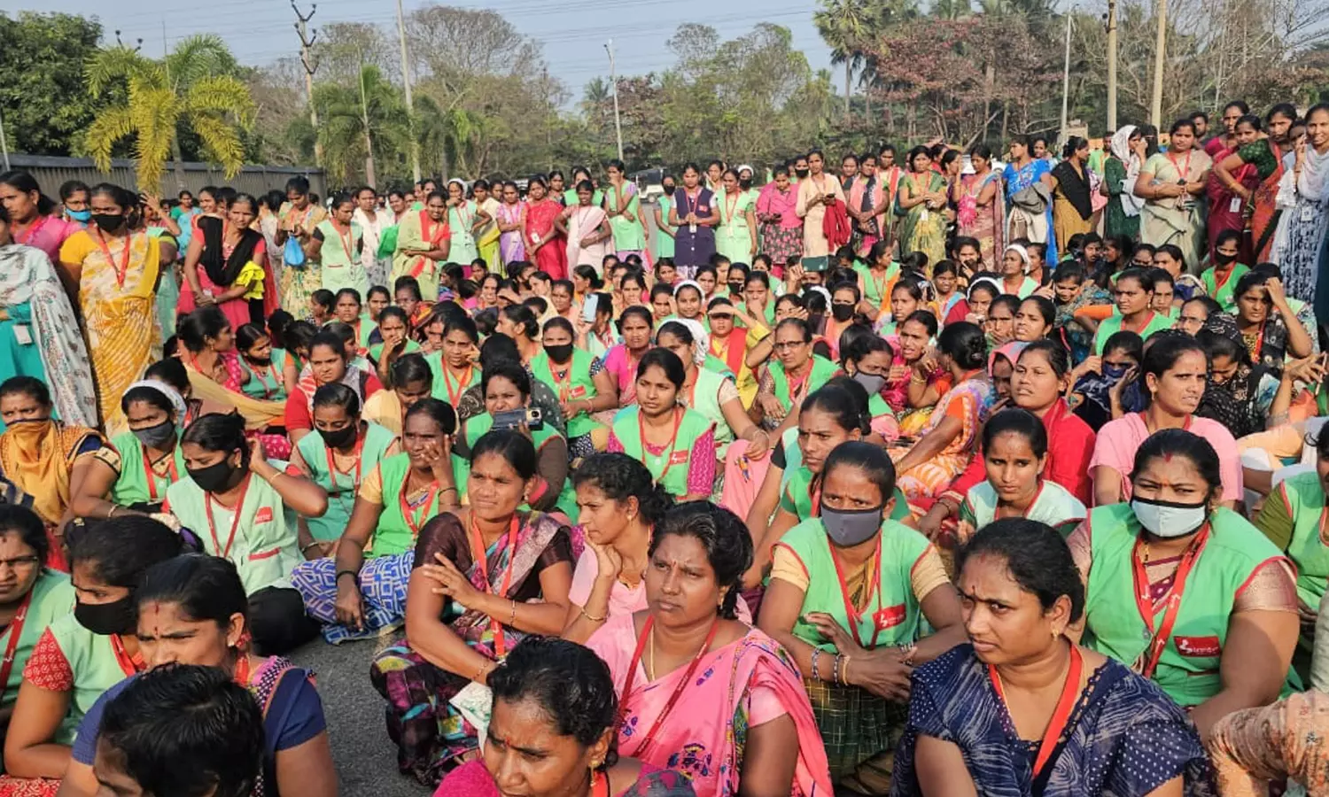 Women workers in Achutapuram SEZ protest over long hours, stagnant wages, and workplace harassment, demanding fair treatment