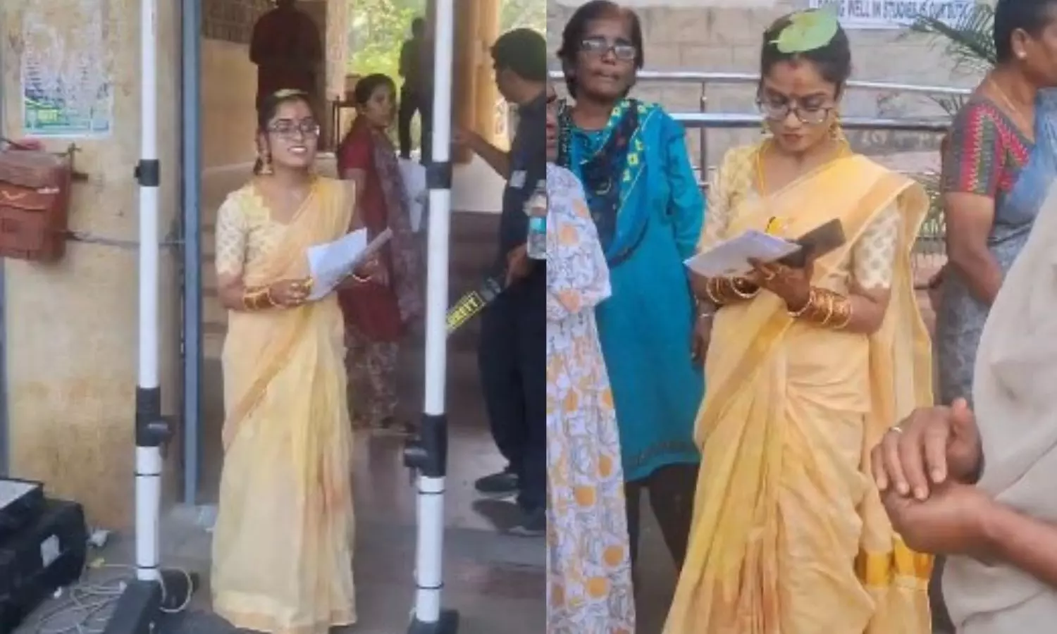 Bride from Chittoor Takes Group-2 Mains Exam on Her Wedding Day, Dressed in Bridal Attire