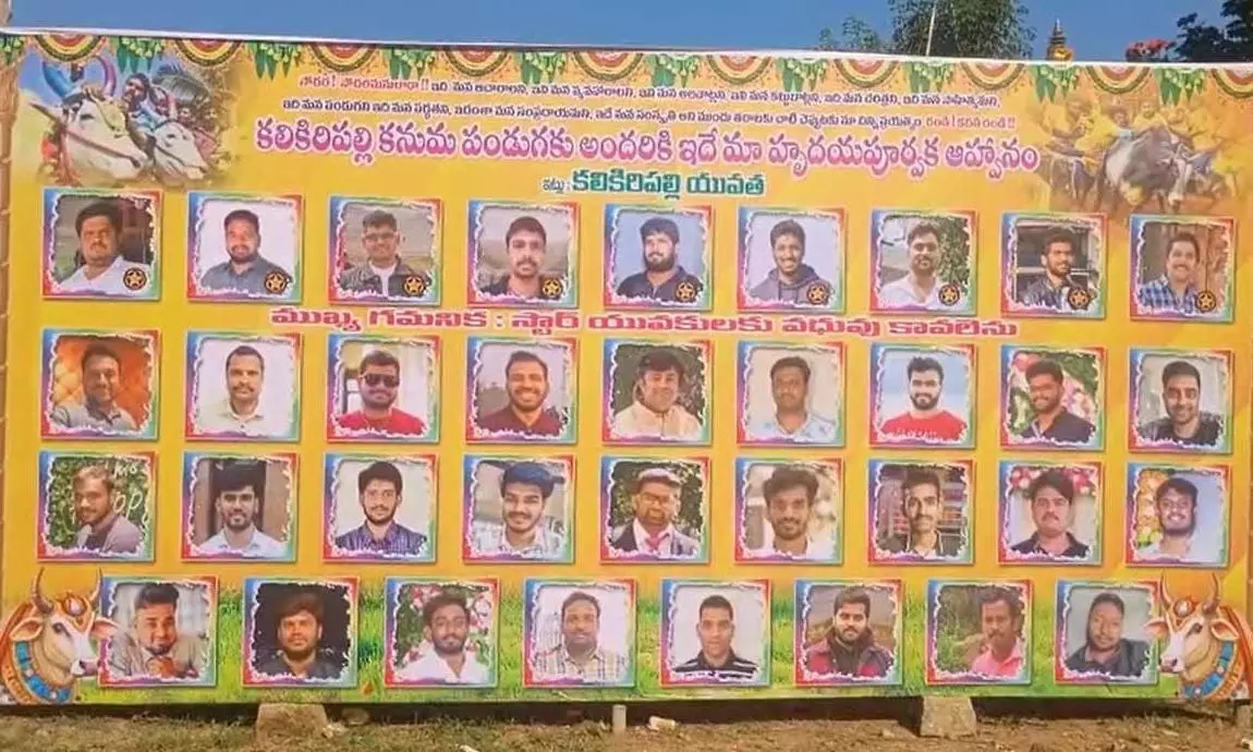 Nellore: In a refreshing blend of humour, creativity and social commentary, a group of unmarried youths in Kalikiripalli village of Iralamandal, Chittoor district, created a sensation at the annual cattle festival by putting up banners with a cheeky message — “Brides wanted for marriage.”