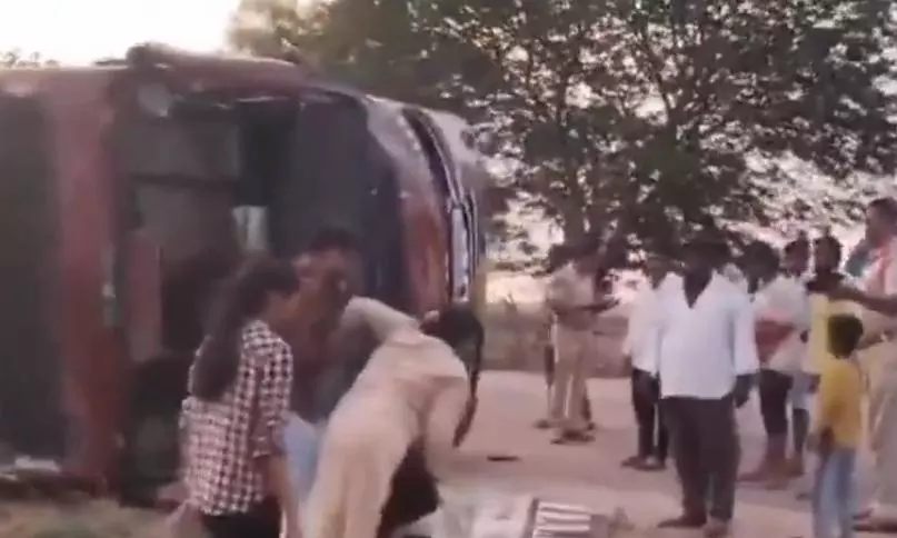 Bus enroute to Adoni from Hyderabad turns turtle, two dead