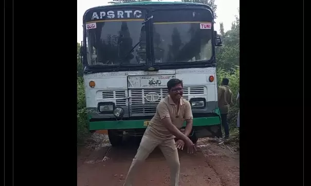 Lokesh is currently touring the US. An official of APSRTC told PTI that the driver, an outsourced employee, was not suspended and is on duty.