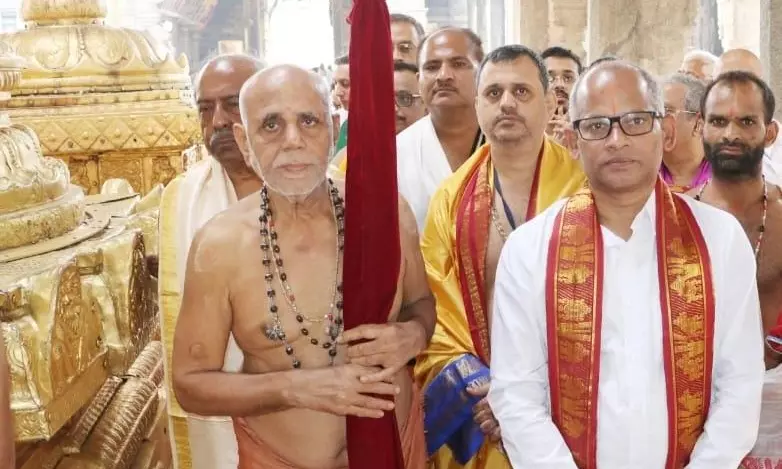 ANANTAPUR: A Chennai-based devotee, Vardhaman Jain, has donated `1.01 crore each to the SV Annaprasadam Trust and the Pranadana Trust of the TTD at the Lord Sri Venkateswara Swamy temple in Tirumala. The cheques were handed over to TTD Additional Executive Officer Ch Venkaiah Chowdary on behalf of Sri Vyasaraja Mutt Pontiff, Sri Vidyasrisha Theertha.