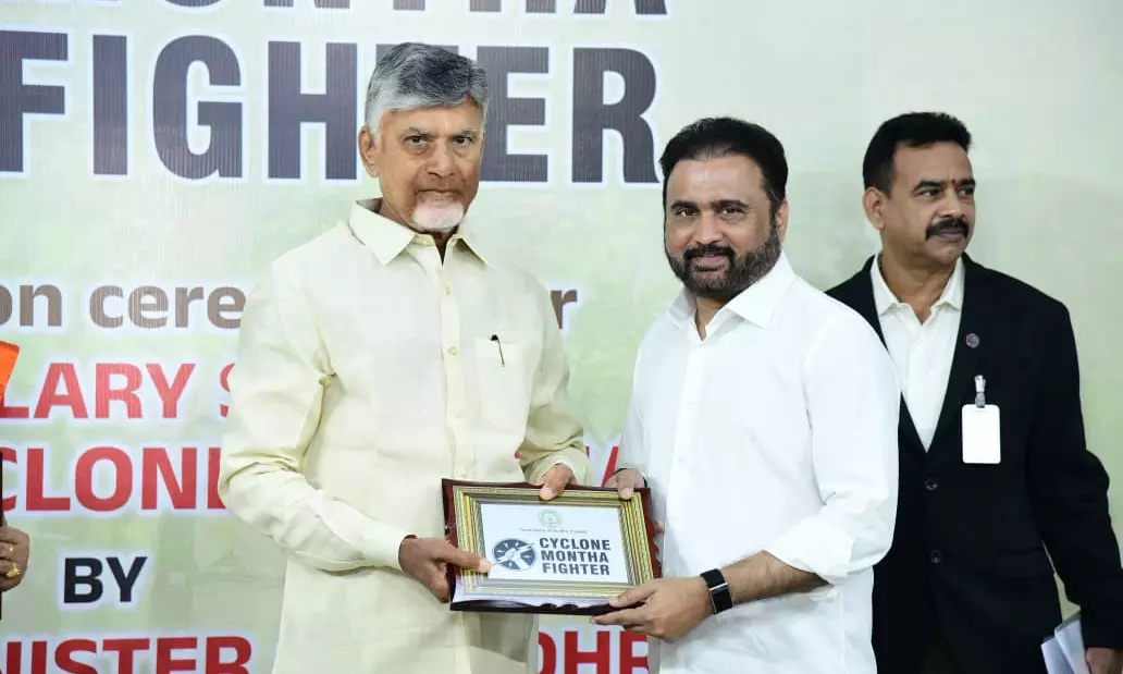 The Chief Minister praised Satish for his efforts in coordinating officials and ensuring the safe evacuation of people from low-lying and flood-prone areas to safer locations. Meanwhile, Bharatiya Janata Party Building Construction Committee member Gatti Suryanarayana felicitated Kakinada Superintendent of Police G. Bindu Madhav for his commendable service during the cyclone.