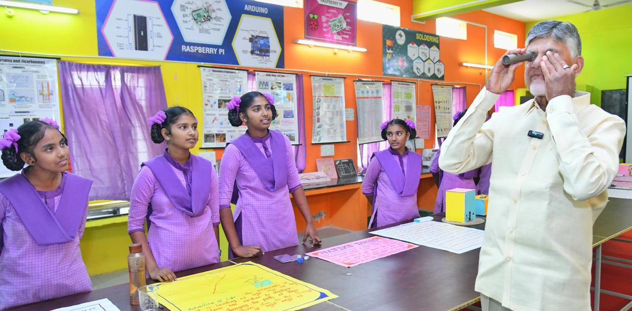 Vijayawada: Chief Minister Nara Chandrababu Naidu lauded the girls who presented innovative creations during his visit to the Girls’ Residential Welfare Hostel in Muppalla village, NTR district, on Saturday.