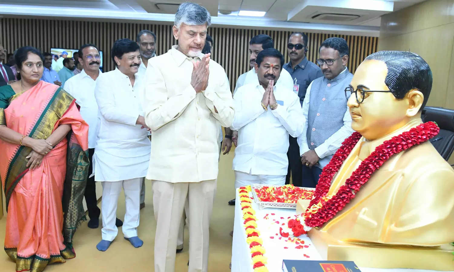 The chief minister garlanded the statue of the Father of the Constitution, BR Ambedkar, and paid rich tributes to him. He helped all the participants read out the Preamble of the Constitution.