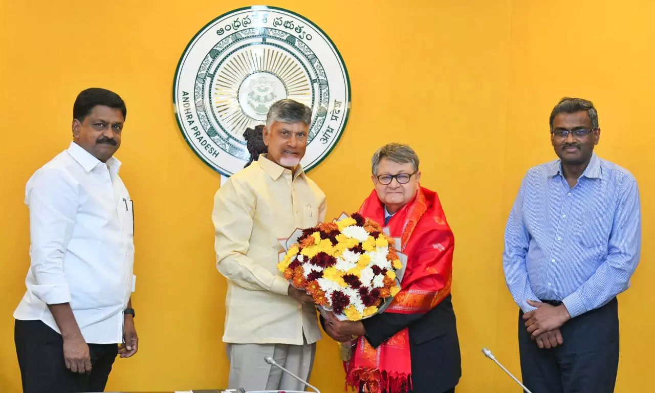 Vijayawada: Chief Minister Nara Chandrababu Naidu has sought central assistance for the Swarnandhra – 2047 vision document. Naidu met NITI Aayog vice chairman Suman Bery at the state secretariat on Friday and explained to him that the document aimed at transforming the state into a scenario of “One Family-One AI Professional – One Entrepreneur.”
