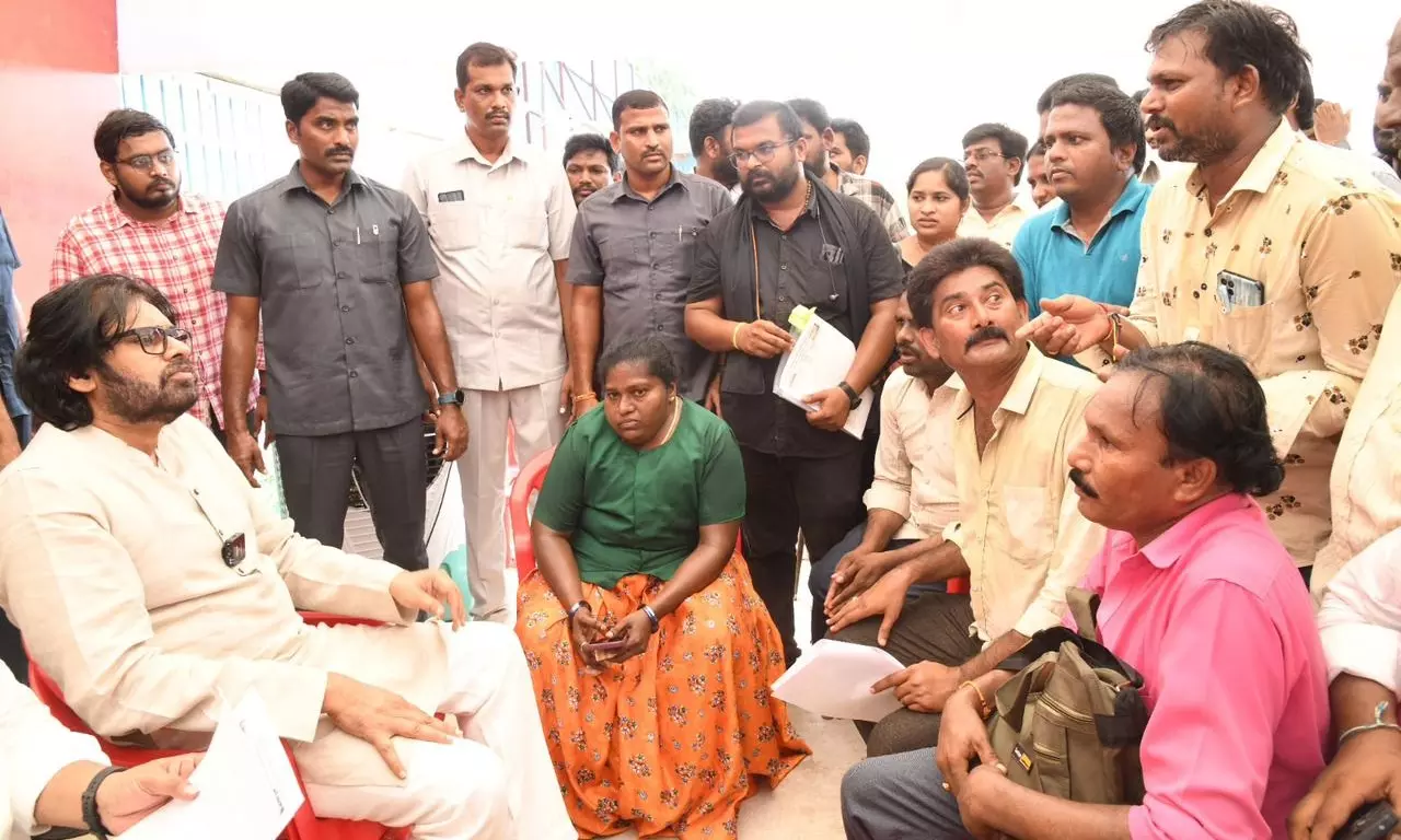 During the meeting, Pawan Kalyan assured the employees that their concerns would be addressed, and he would issue appropriate orders to officials to clear the pending salary dues. T. Sujana Kumari, a differently-abled woman who has worked as a helper at the Kamalapuram lab for the past ten years, requested Pawan Kalyan to reinstate her, as she was removed from her position three months ago. In response, Pawan Kalyan assured her that justice would be served and that he would raise the issue with the relevant officials. MLC P. Hari Prasad, JS Programmes Organising Committee Convenor Kalyanam Siva Srinivas, and others were present.