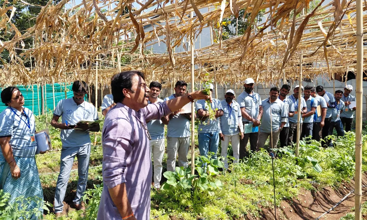 DAESI coordinator Adinarayana said the model significantly reduces farming risk and saves up to 70 per cent of irrigation water due to effective shade management. Jai Kisan Foundation chairman Nagamalli Obulesh said the system ensures continuous monthly income for farmers.