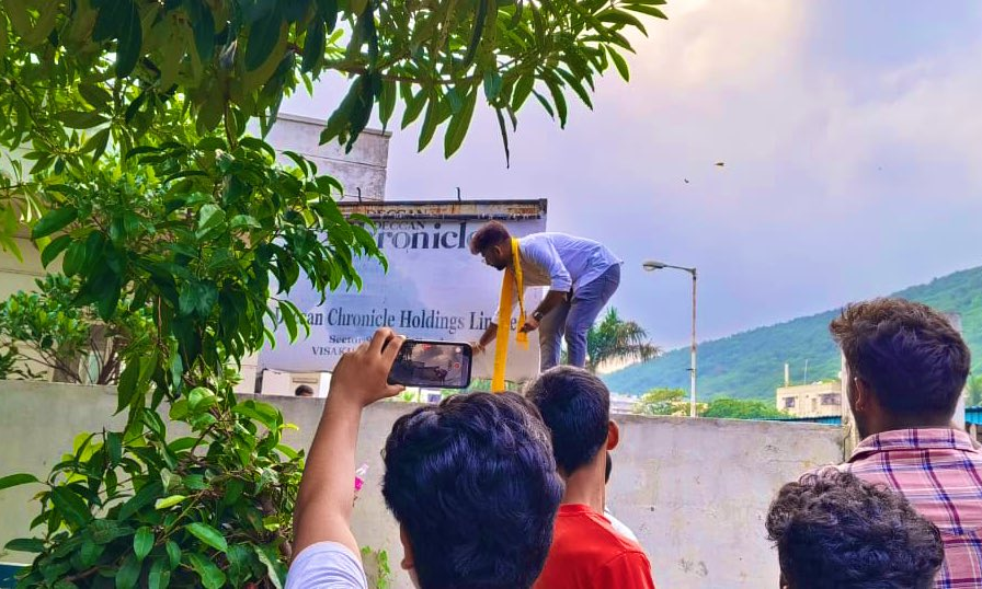 Visakhapatnam: The Deccan Chronicle office in Vizag was attacked by TD activists following a report published in the English daily titled "Alliance takes U-turn on VSP privatization".