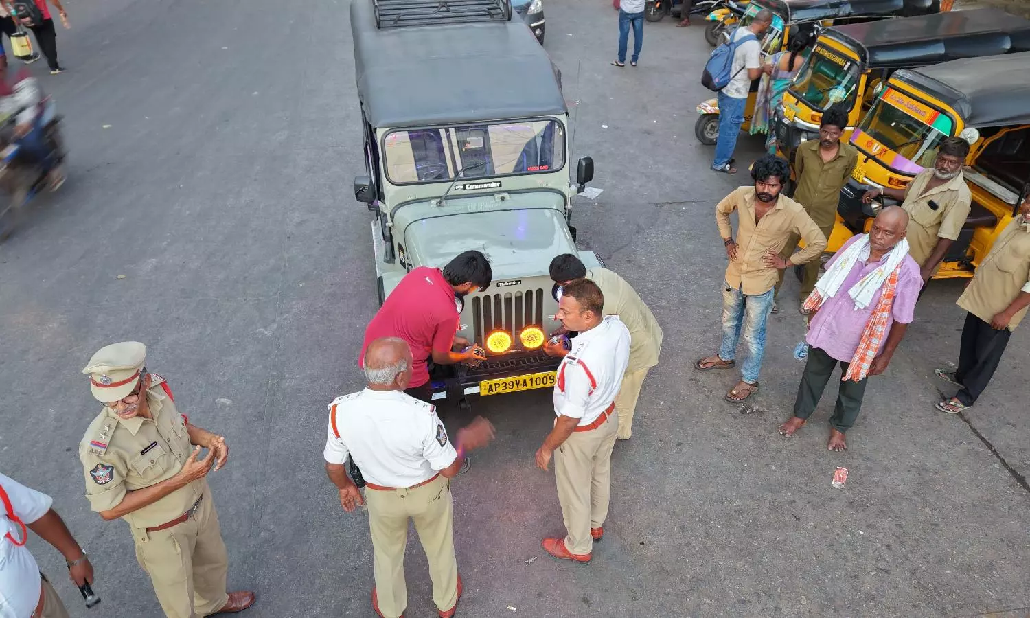 Following instructions from District SP V Harshavardhan Raju, traffic police teams, led by Circle Inspectors Sanjeev Kumar and R. Vinod Kumar, monitored the area with drone cameras. They identified motorists engaging in reckless driving and observed jeeps using banned air horns, contributing to noise pollution