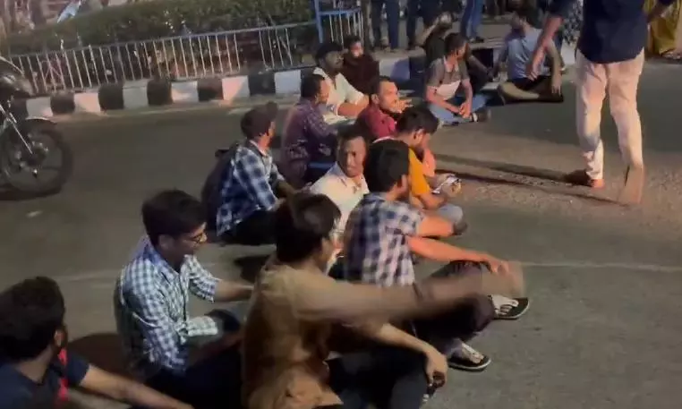 Group 2 candidates stage a sudden strike at Vizag traffic signal