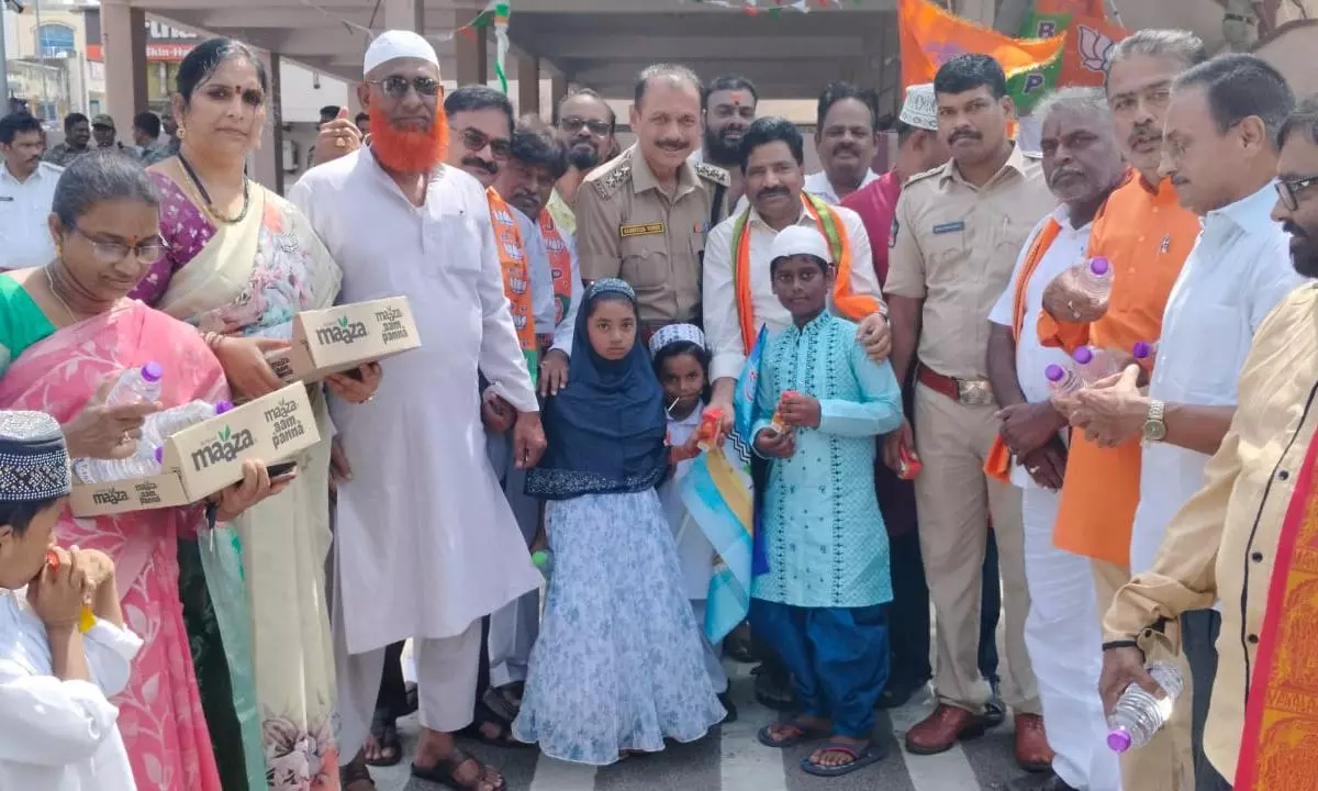 Kakinada: As a gesture of communal harmony, the Hindus and Muslims have participated in one another programme and greeted each other on Monday as two occasions-Milad-Un-Nabi and Ganesh Idol Immersion were celebrated at Kakinada. With the advice of the Kakinada DSP Vishnu Raghuveer, the religious leaders proved their unity on these occasions, with the BJP Kakinada branch taking a major part in the event.