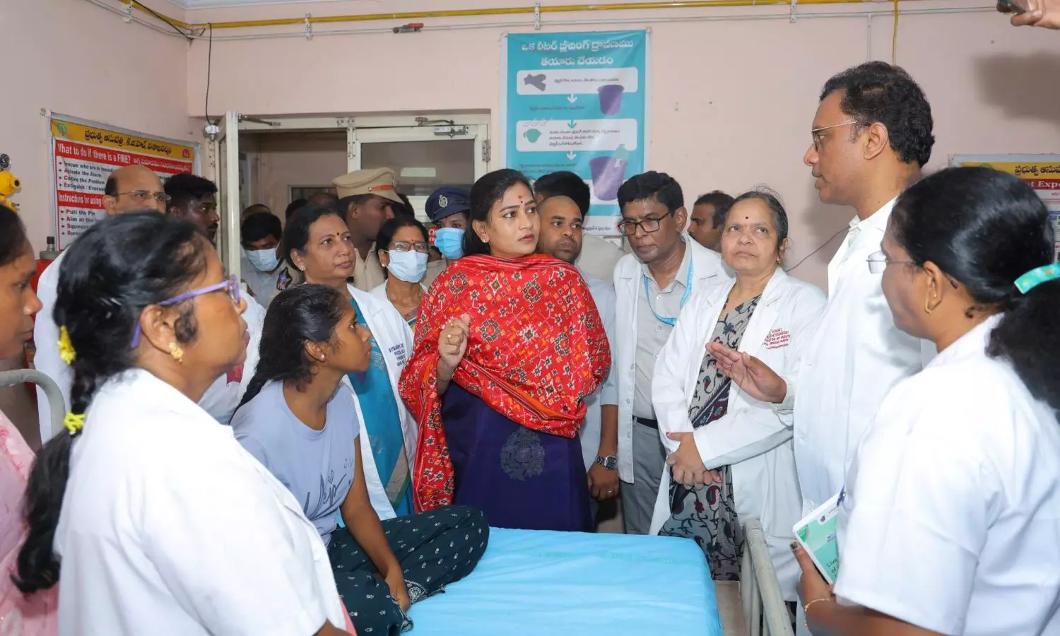 Visakhapatnam:Home minister Vangalapudi Anitha visited King George Hospital (KGH) on Monday to meet tribal welfare students who are being treated for jaundice, following an outbreak at a girls' hostel in Parvathipuram Manyam district.