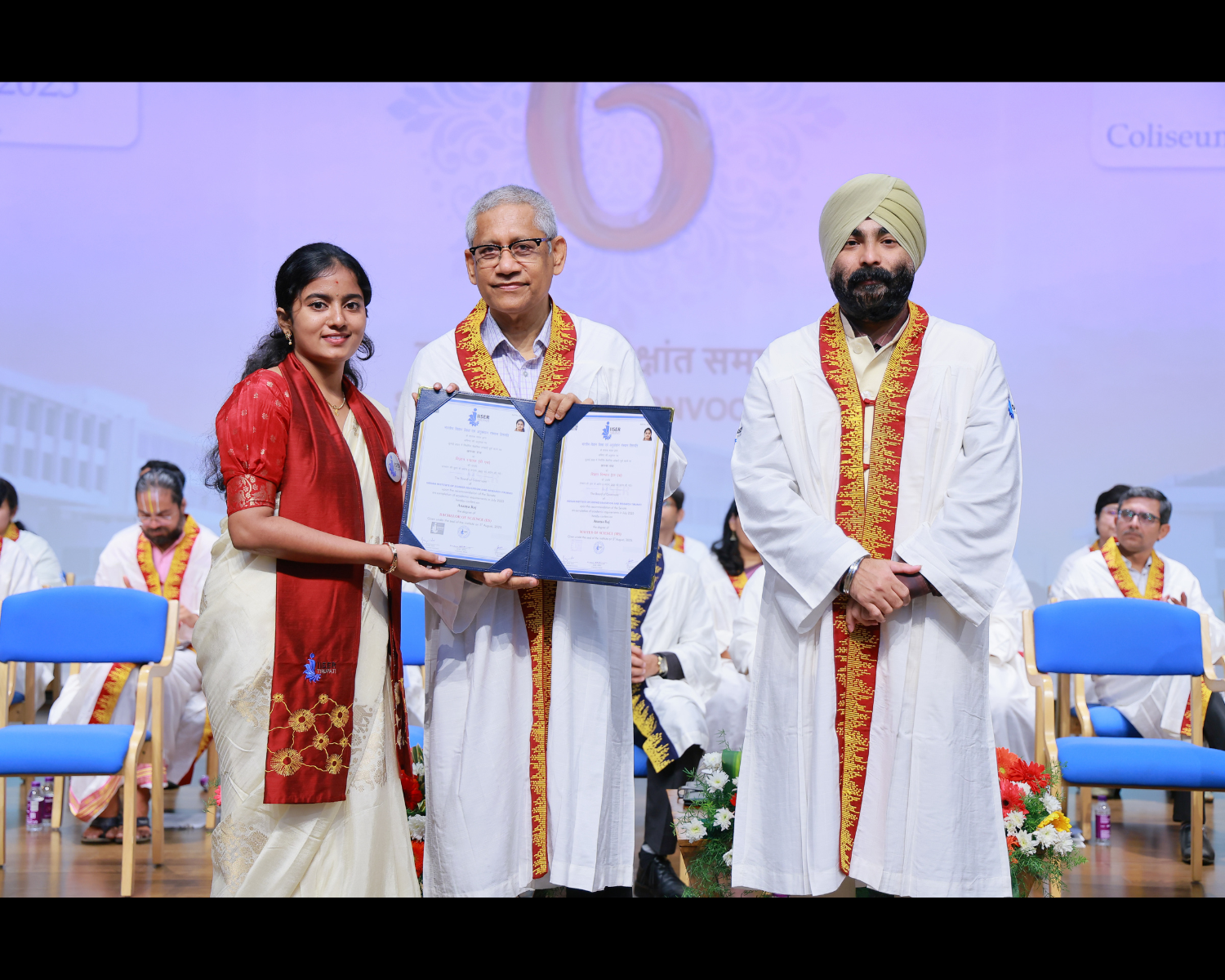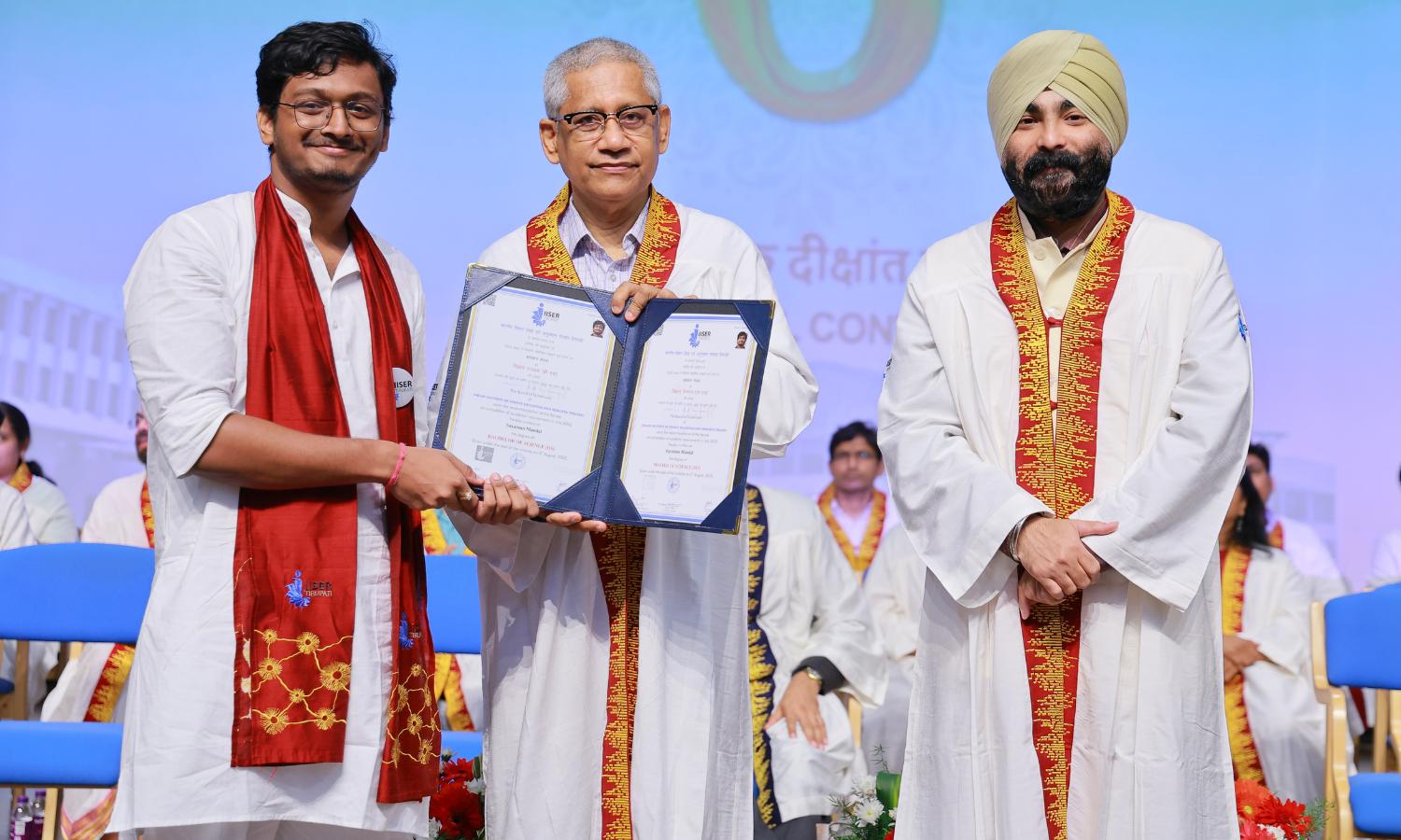 A total of 255 degrees were awarded during the ceremony, including 22 PhDs, 8 Integrated PhDs, 3 MS degrees, 141 BS-MS dual degrees, 69 Professional Master’s degrees, 6 BS degrees, and 6 BSc degrees. The event concluded with a unique trilingual vote of thanks by Registrar Kohli, delivered in Hindi, Telugu, and English.
