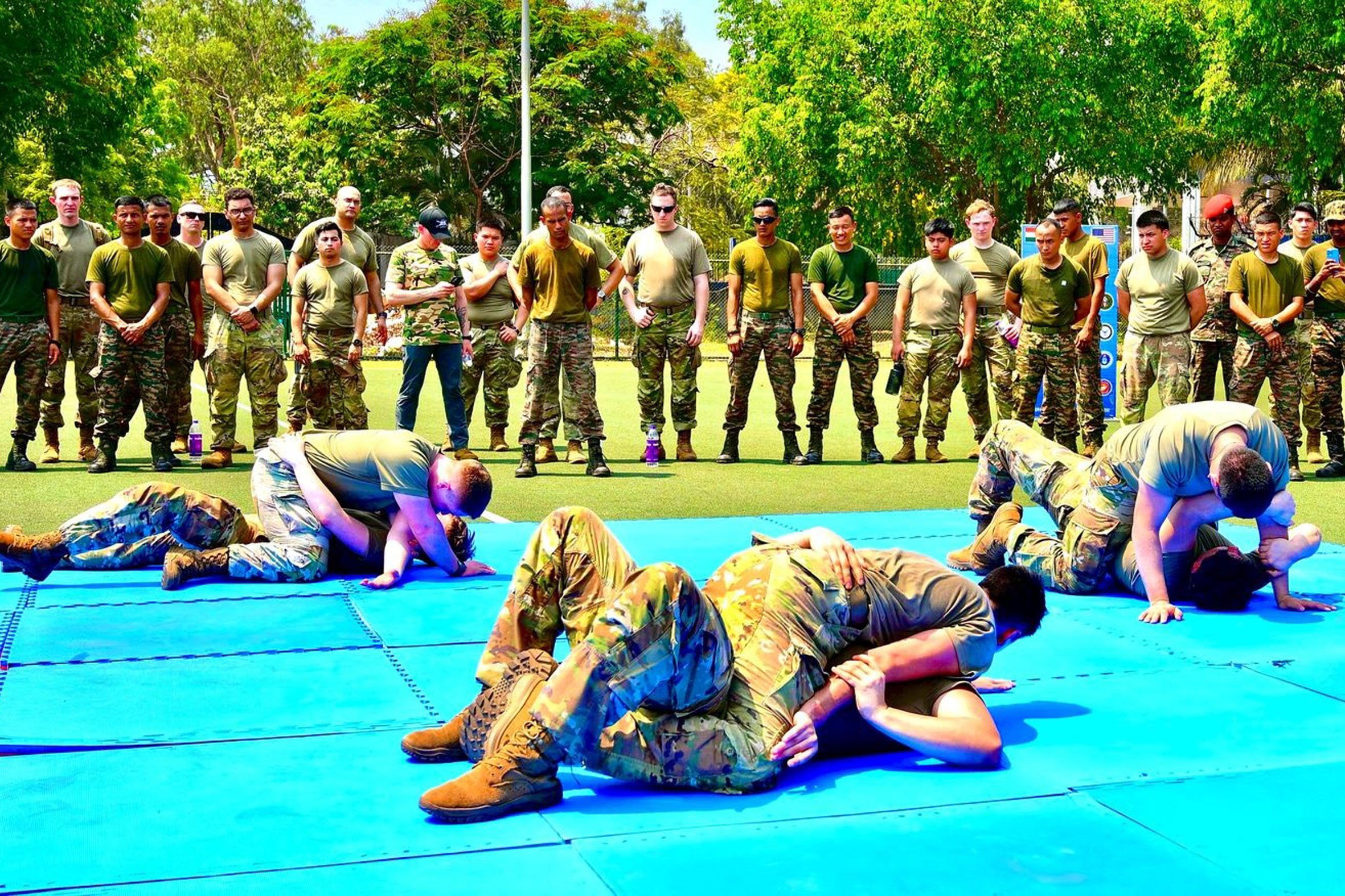 The AMAR segment included close combat techniques and self-defence drills conducted in unison by both contingents, highlighting shared discipline and combat conditioning.