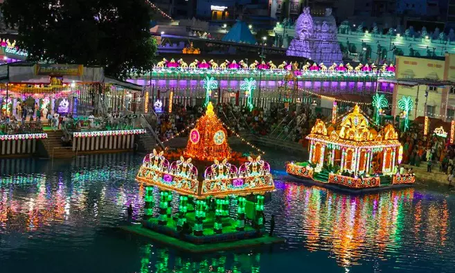 Later in the evening, after the Sahasra Deepalankara Seva, the deities were taken on a ceremonial procession to four Mada streets, drawing large crowds of devotees.