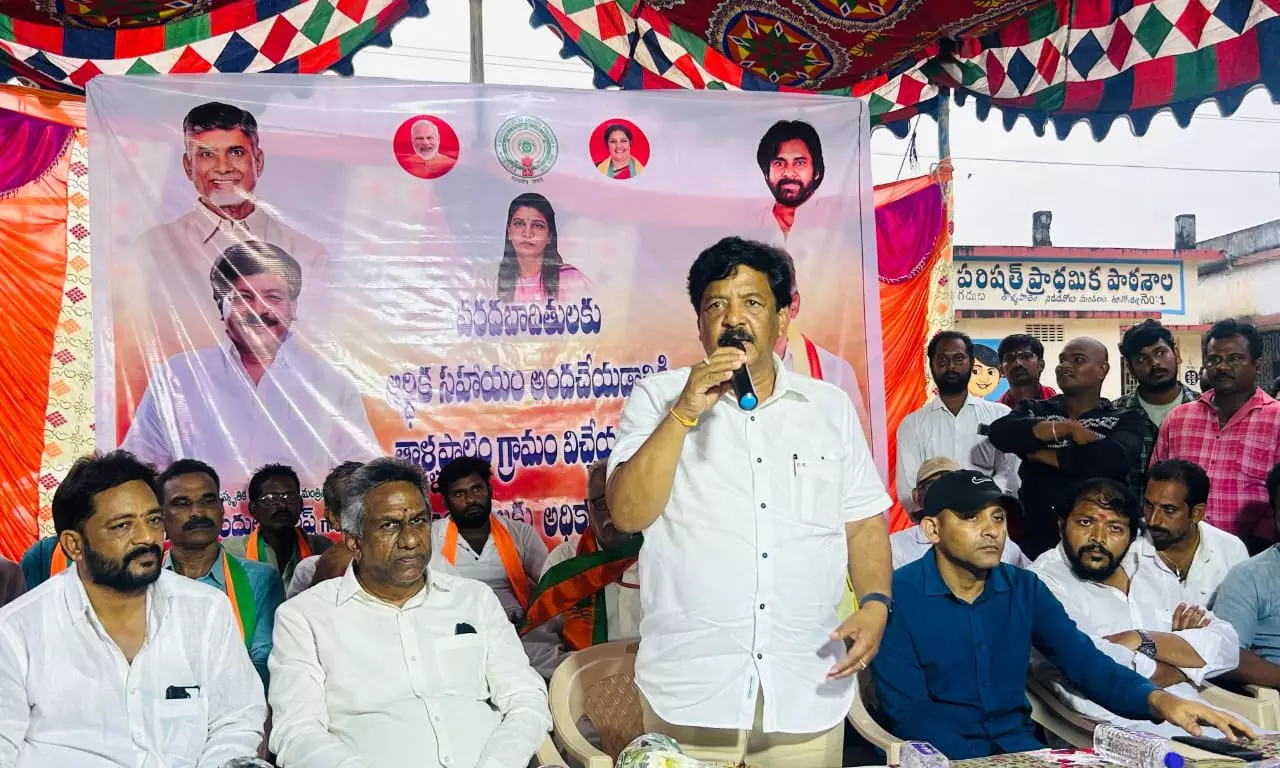Kakinada: Tourism minister Kandula Durgesh stated that financial assistance of Rs 3,000 had been provided to each of the 394 flood-affected families in Nidadavole rural mandal on Monday. The minister also handed over a cheque for Rs 5 lakh to the family members of B. Prasad from Unakaramilli village, Devarapalli mandal, who died in a recent road accident at Chinnayagudem.