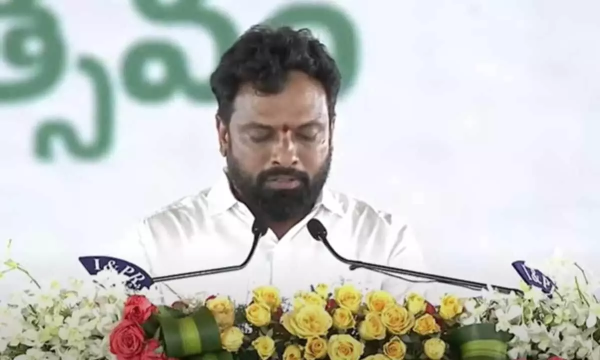 Kakinada: Labour Minister Vasamsetti Subash criticised former ministers Ch. Srinivasa Venu Gopalakrishna and Pilli Subhashchandra Bose during his tour of Vegayammapeta, Draksharamam, and Annayipeta on Sunday, aimed at promoting the "Mana Gramam-Mana Subhash" programme. He accused Venu of looting temple property, stating that vigilance officials had conducted inquiries and the government subsequently suspended corrupt officials.