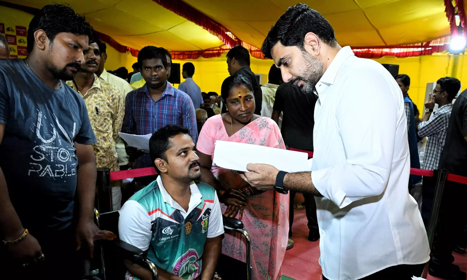 Vijayawada: Education, IT and electronics minister Nara Lokesh received grievances from people at the Praja Darbar he held in Undavalli programme on Tuesday.