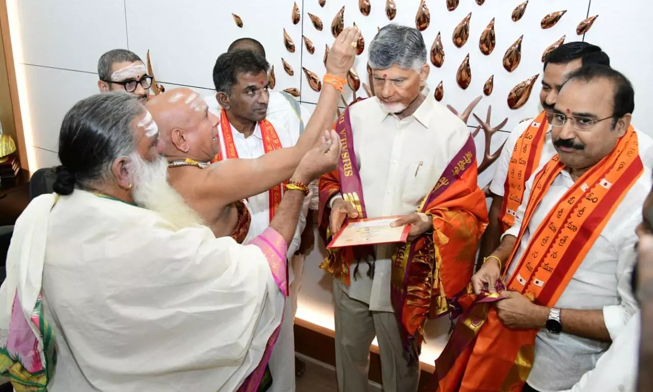 The delegation presented the Chief Minister with a portrait of the presiding deity and prasadam. Temple priests offered Vedic chants and blessings during the meeting. The MLA and temple board members briefed the Chief Minister on the arrangements being made for the Brahmotsavams.