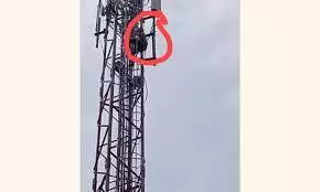 The man, identified as Shiva, climbed the tower and remained there for several hours, performing dangerous stunts and ignoring repeated pleas from villagers to come down.