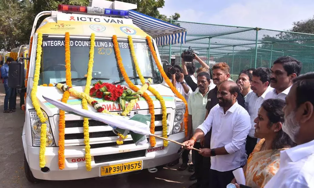 Vijayawada:Minister for health Satya Kumar Yadav flagged off 10 mobile Integrated Counselling and Testing Centres (ICTC) to test the HIV/AIDS to the people at a programme held on the premises of Siddarth Medical College and hospital here on Friday.