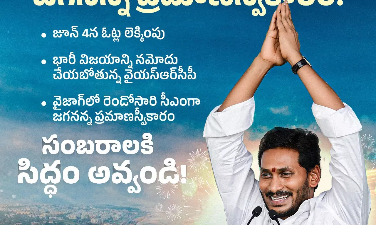 Vijayawada: A poster posted by the YSRCP on its twitter account on Saturday afternoon asking the cadre to gear up for celebrations after the party's victory after completion of counting on June 4 drew attention of everyone especially among politicians.