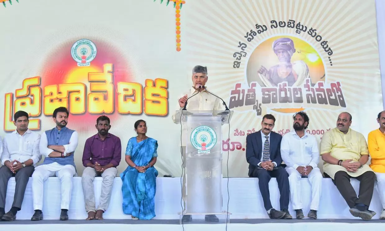 Launching the Matchakarula Sevalo scheme for the welfare of fishermen, Naidu announced that Rs.20,000 financial assistance will be given to the fishermen during the fishing ban period. Additionally, he pledged Rs.15,000 under Talliki Vandanam for every child, so that fishing families can send their children to school without facing any financial strain. He assured the fishing community that the long-awaited fishing harbour will be completed soon.