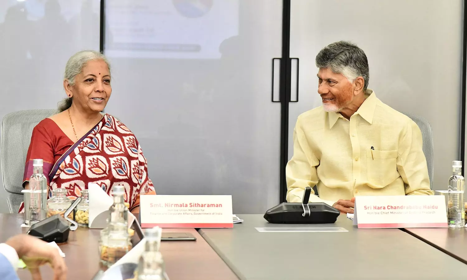 Amaravati: Chief Minister N. Chandrababu Naidu met Union Finance Minister Nirmala Sitharaman at the CRDA headquarters on Thursday. Ministers Nara Lokesh, Narayana and Payyavula Keshav were also present at the meeting.