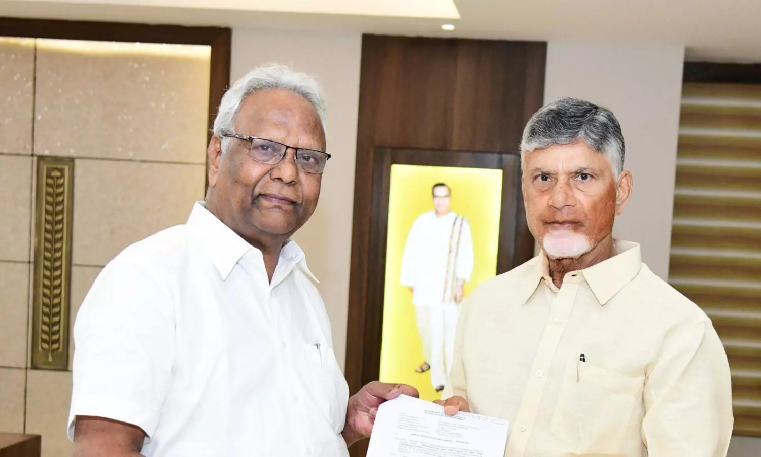 Chief Minister Nara Chandrababu Naidu appreciates industrialist Karumanchi Prasad’s support for the Kummamuru lift irrigation project.