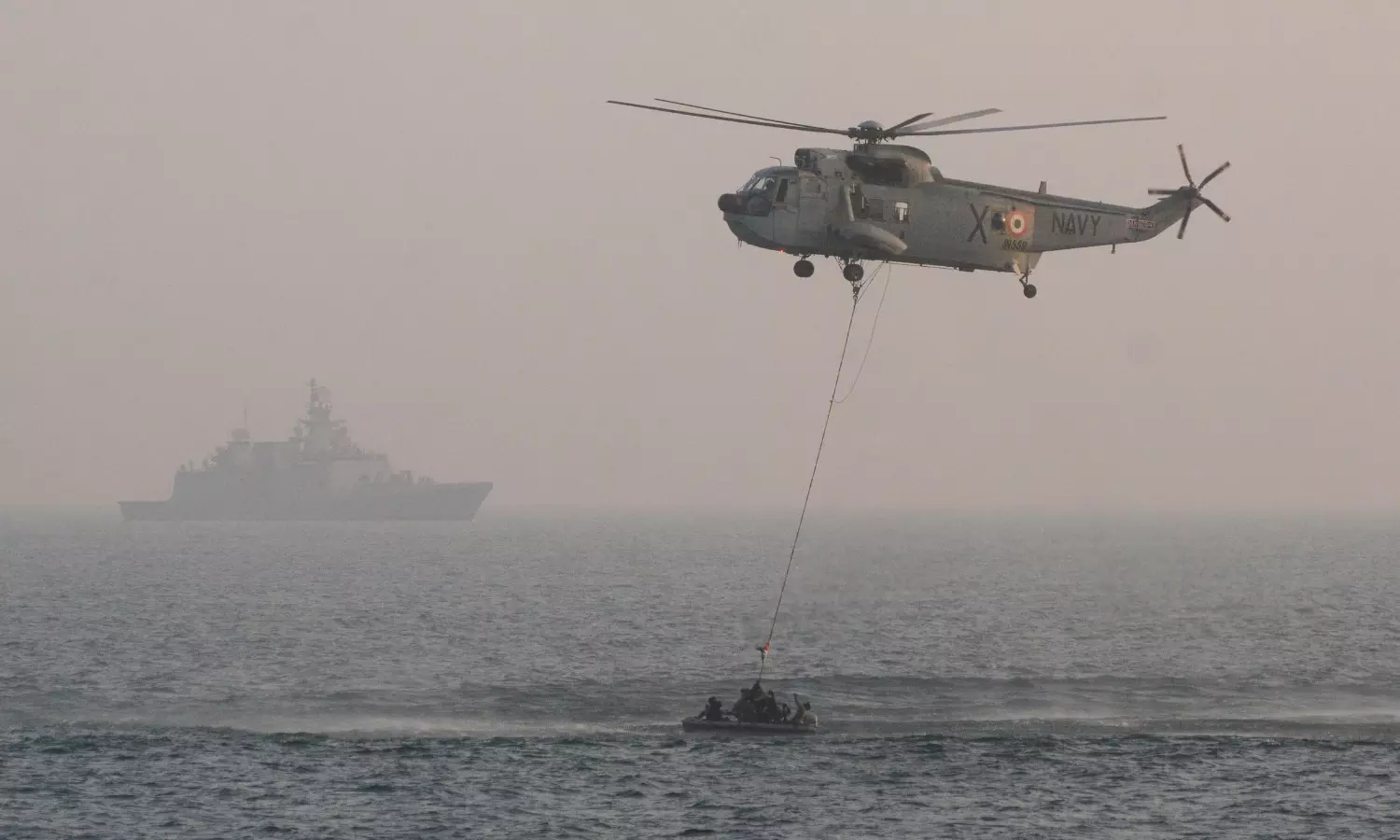 The event, which served as a preview for the main demonstration scheduled for January 4, 2025, showcased the Navy’s operational capabilities through a series of coordinated air and sea manoeuvres. Over RK Beach, Seahawk helicopters demonstrated critical rescue operations, while marine commandos executed precise parachute drops, keeping spectators spellbound.
