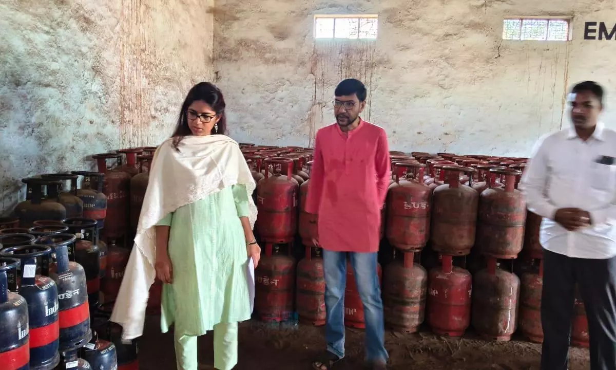 During a surprise inspection at the Nirmala Indane Gas Agency godown in Tangutur mandal, she reviewed stock registers, daily sales records and cylinder availability.