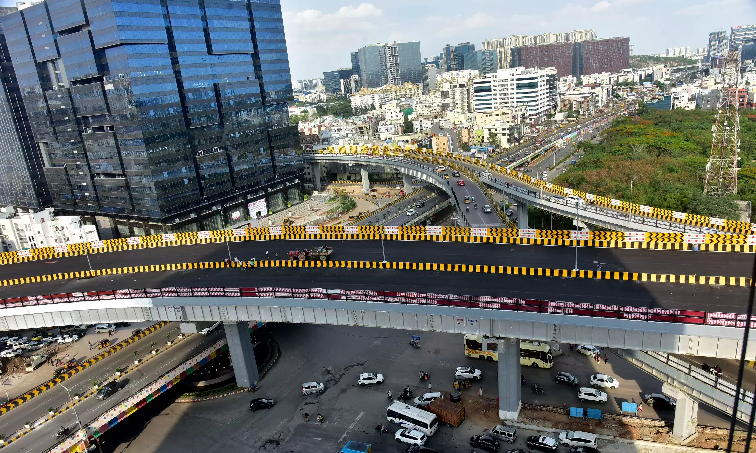 The 1.2-km-long flyover was constructed with a cost of `178 crore, under the Strategic Road Development Programme (SRDP). The flyover has been constructed over the flyovers at Gachibowli junction and Shilpa Layout Phase-1.