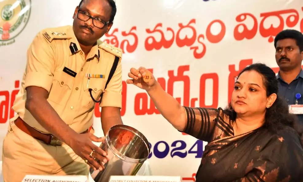 Vijayawada:The state Excise Department has completed the lottery process to allot private liquor shops in all the 26 districts on Monday. A total of 89,882 applications were submitted for the allocation of 3,396 shops. The lottery process began at 8am and concluded by 3pm.