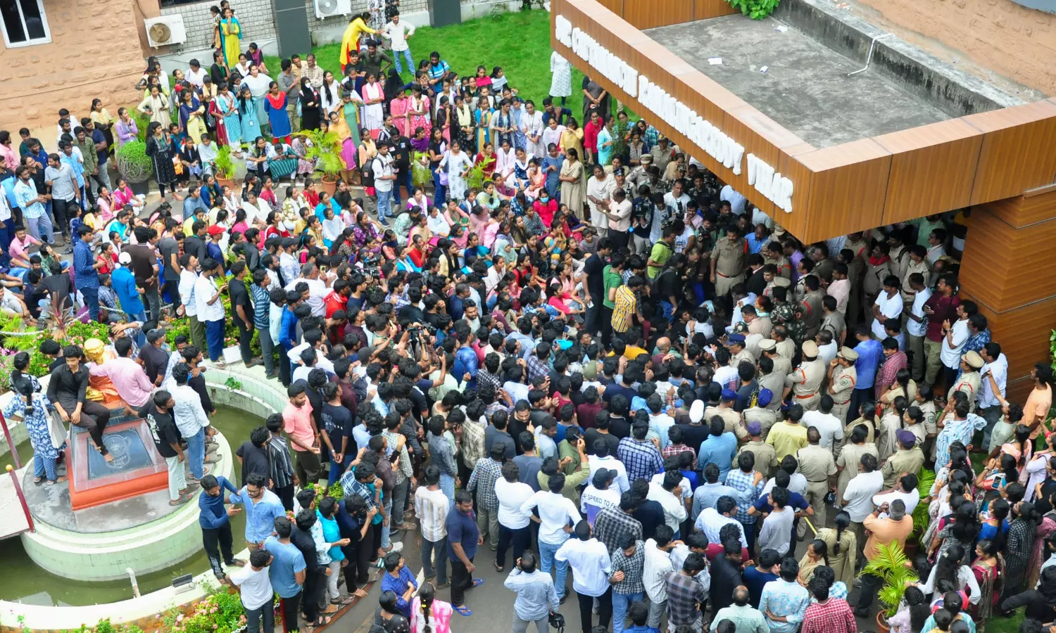 Visakhapatnam: Andhra University (AU) became a venue of intense protests on Friday following the death of B. Ed student V. Venkata Sai Manikantha on Thursday, allegedly due to lack of basic medical care at the campus dispensary.