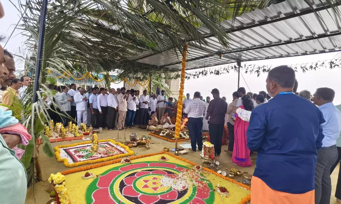 Officials said the initial ceremony for installation of 33 new crest gates at the Tungabhadra reservoir in Munirabad, Koppal taluk, commenced with rituals and Maha Sudarshana homam.