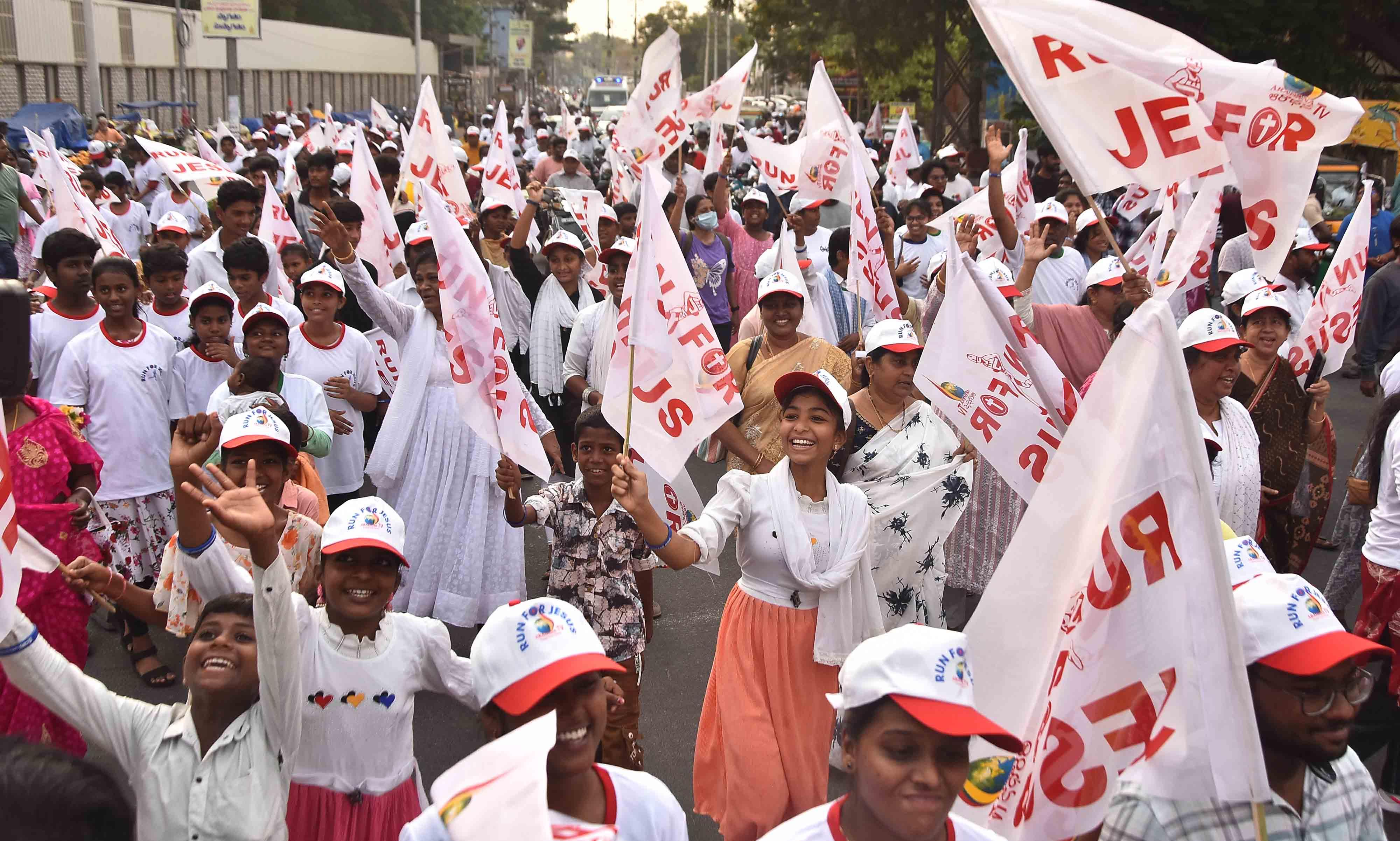 Vijayawada: The Andhra Pradesh Federation of Telugu Churches, in collaboration with various Christian organisations in Vijayawada, held the ‘Run for Jesus’ peace rally on Saturday. Thousands participated, commemorating the resurrection of Christ with devotion and unity.